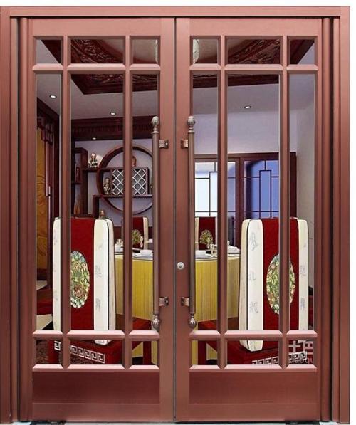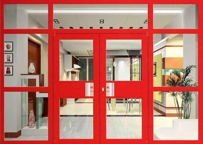 肯德基门主要由门框、门扇、门体玻璃、大拉手、大铰链、闭门器等组成。该门型均可安装于室内和室外。每樘门有两个门扇,左门扇、右门扇。门扇厚度40-60mm。 门扇一边的边框与门框之间由大铰链连接,门扇另一边门边框上安装有扳动式上下插销,门扇顶部横梁一侧安装有闭门器与门框连接。门体大铰链采用底部螺栓旋紧方式,美观大方,经久耐用。门扇中间部分可增加横撑,美观的同时也方便行人出入。门扇玻璃为钢化玻璃,门体安装不锈钢拉手,美观且方便行人出入。